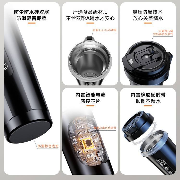 Bouilloire électrique intelligente 500 ml avec affichage de la température, tasse chauffante isolée pour voiture, camion, 12 V, 24 V, universelle, blanche, batterie rechargeable