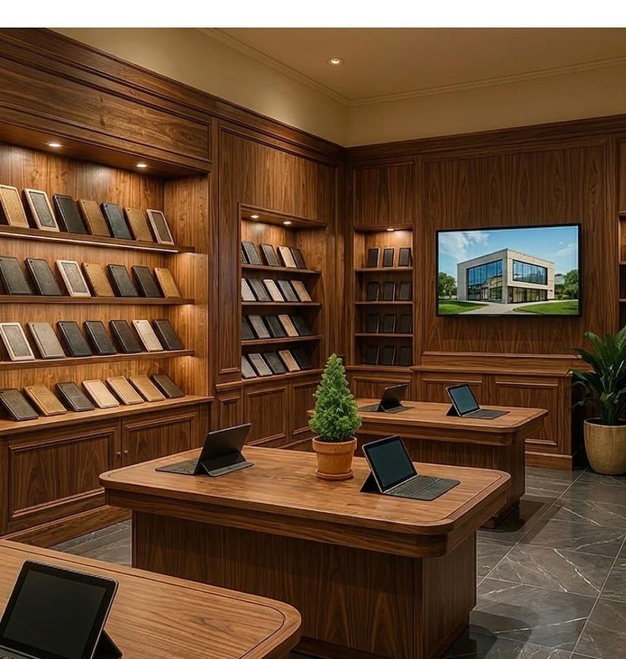 Conception d'intérieur de magasin électronique intelligent avec des présentoirs axés sur le produit, aménagement moderne de magasin d'électronique, étagères de présentation, mobilier