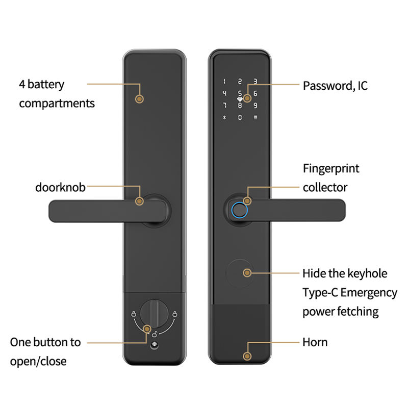 Débloquez les moyens:Empreinte digitale, Mot de passe, Clé, Application Tuya, Carte, Application TTlock