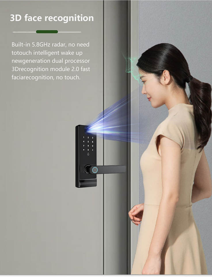 Serrure numérique intelligente avec reconnaissance faciale et empreintes digitales, caméra intégrée, compatible acier/aluminium/bois, Wi-Fi, batterie au lithium, application Tuya