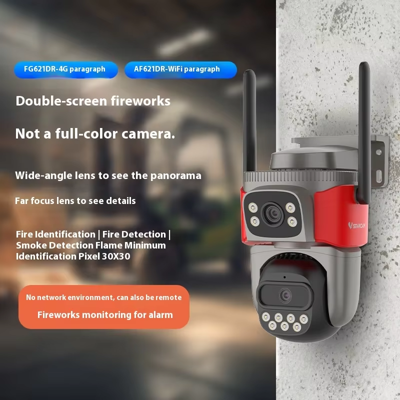Détecteur de fumée intelligent, caméra de sécurité, système d'alarme IA, sirène intégrée, lumière, réseau 4G SIM WiFi, caméra PTZ CCTV, cloud CMOS
