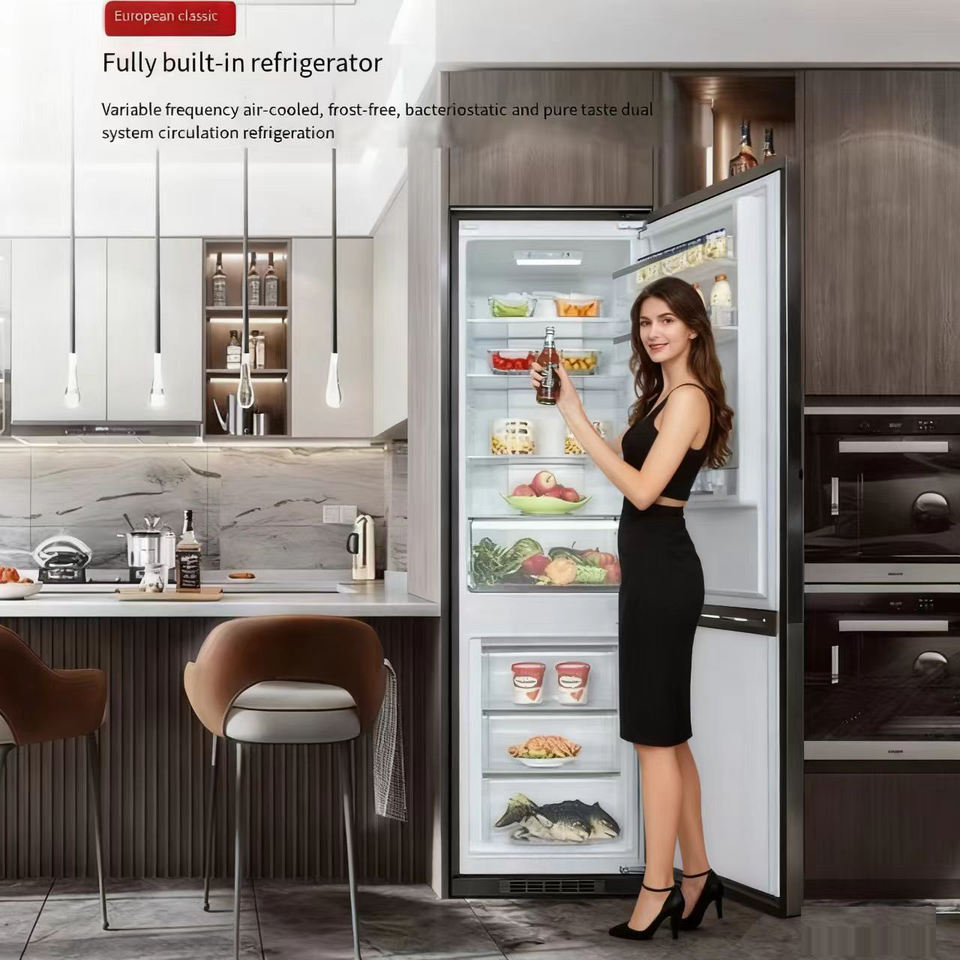 Réfrigérateur intelligent pleine grandeur encastré à colonne prêt à l'emploi avec congélateur en bas