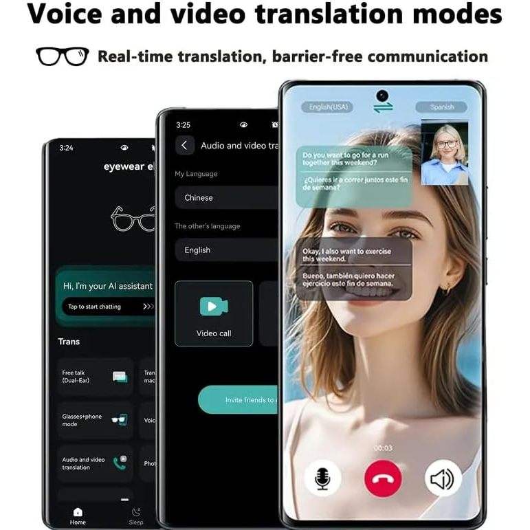 Lunettes Intelligentes M01 Assistant IA Bluetooth Forme Ovale pour Hommes Femmes Musique