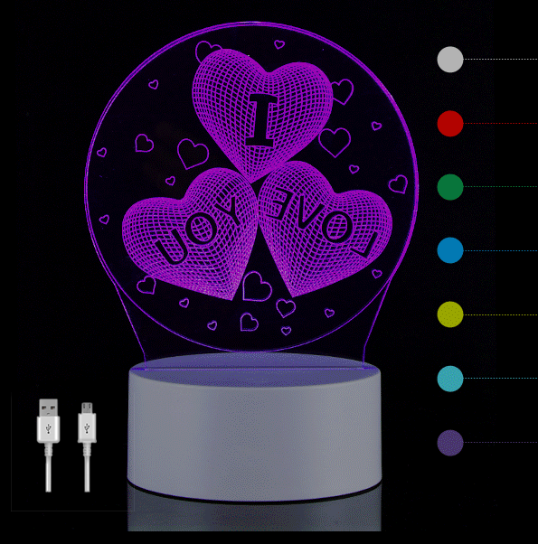 Décor à la maison acrylique personnalisé cadeau d'amour Led 3d illusion veilleuse led base de lampe 7 couleurs rechargeable table veilleuse