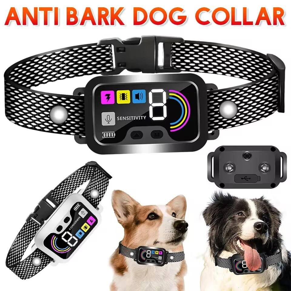 Collier anti-aboiement intelligent IP67 sans choc avec écran LED, charge rapide, puce ultra-sensible, réaction 0,01s