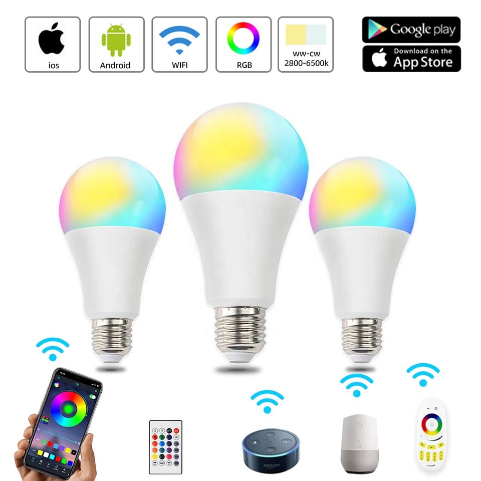 Ampoule LED Intelligente A60 5W 10W RGBW à Changement de Couleurs avec Contrôle Vocal WiFi Compatible Alexa Google Home pour Éclairage de Salon