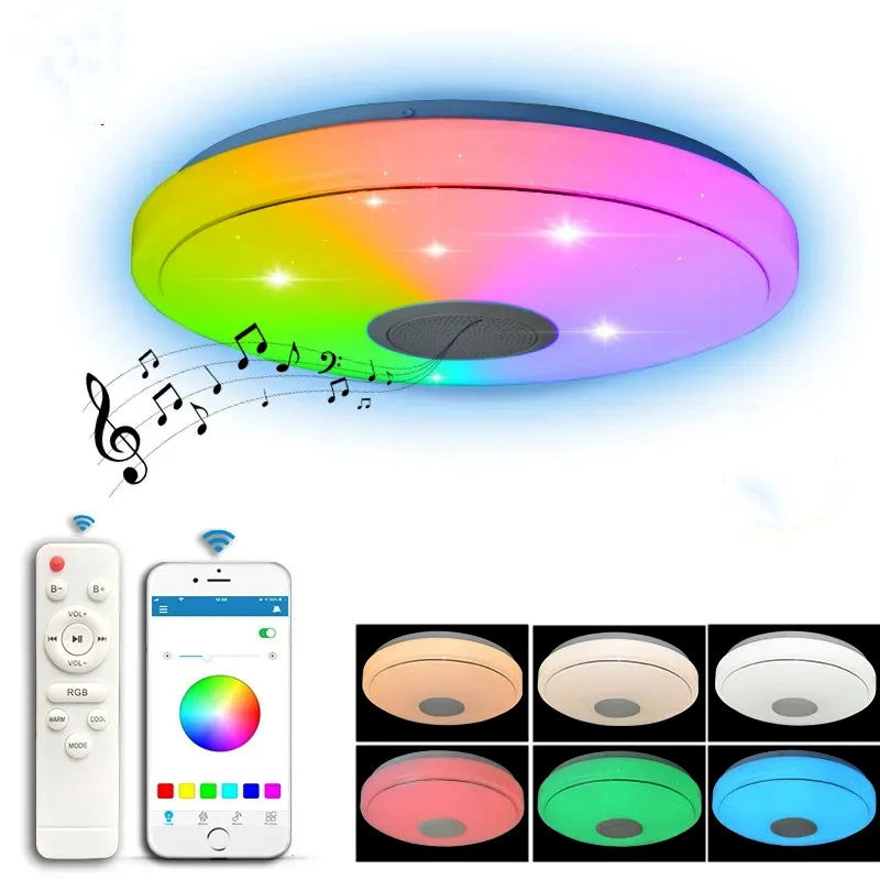 Plafonnier LED intelligent avec application Bluetooth, haut-parleur musical, lumière RGB à intensité variable, lampe de plafond pour la maison, chambre à coucher, salon, lumière d'ambiance