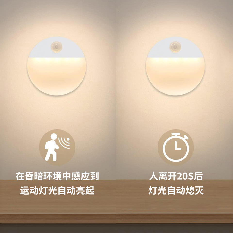 Veilleuse LED intelligente ronde à capteur, alimentée par piles, pour chambre, couloir, toilettes, armoire