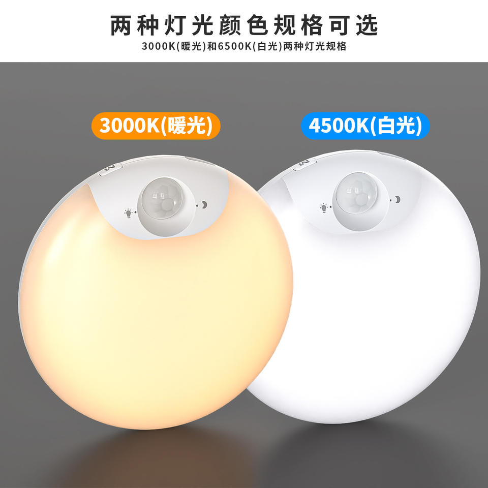 Veilleuse LED intelligente ronde avec capteur, rechargeable par USB, pour chevet, maison, toilettes, couloir, armoire