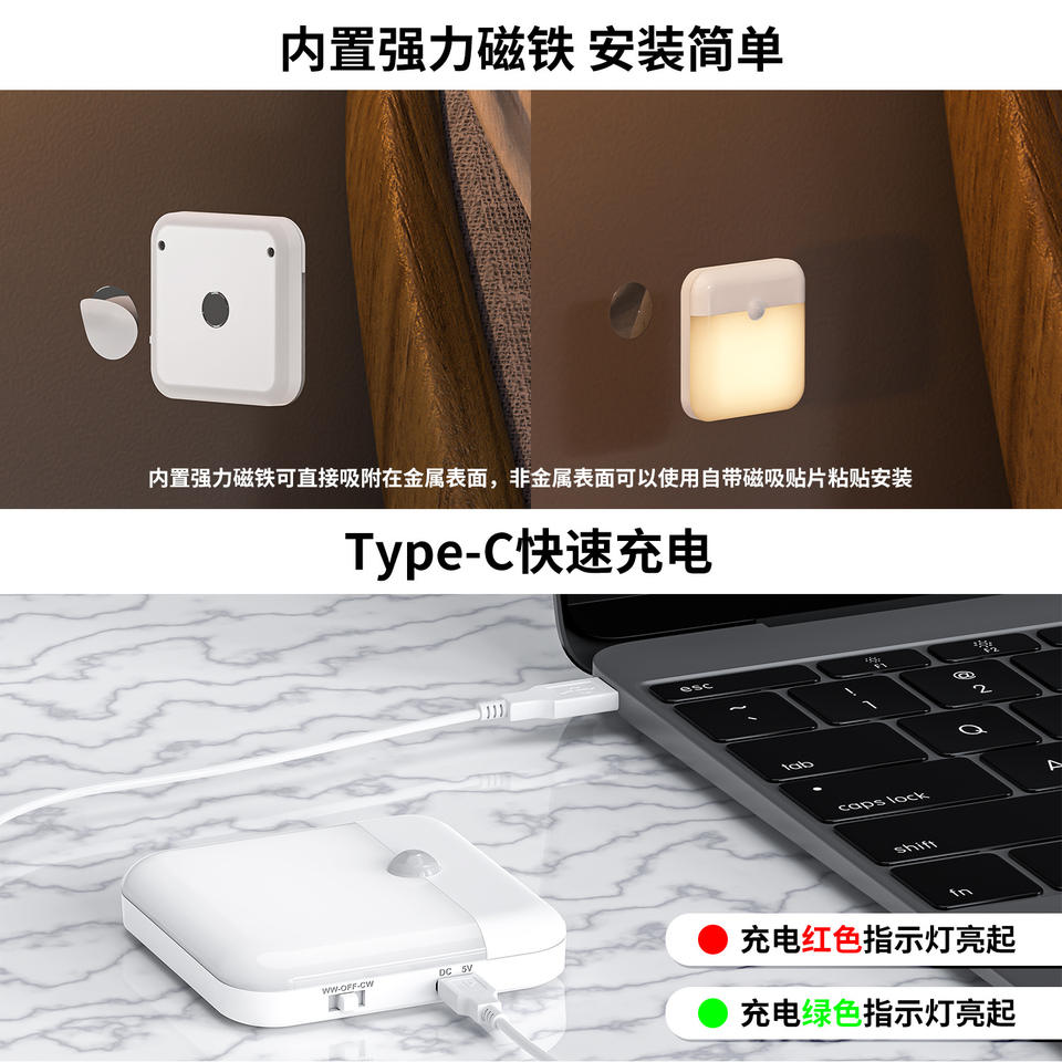 Veilleuse LED intelligente carrée à capteur de mouvement, alimentée par USB, pour chambre, couloir, toilettes, armoire