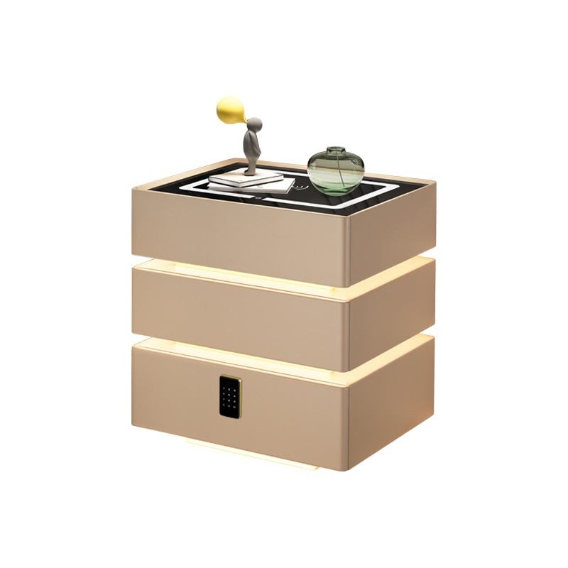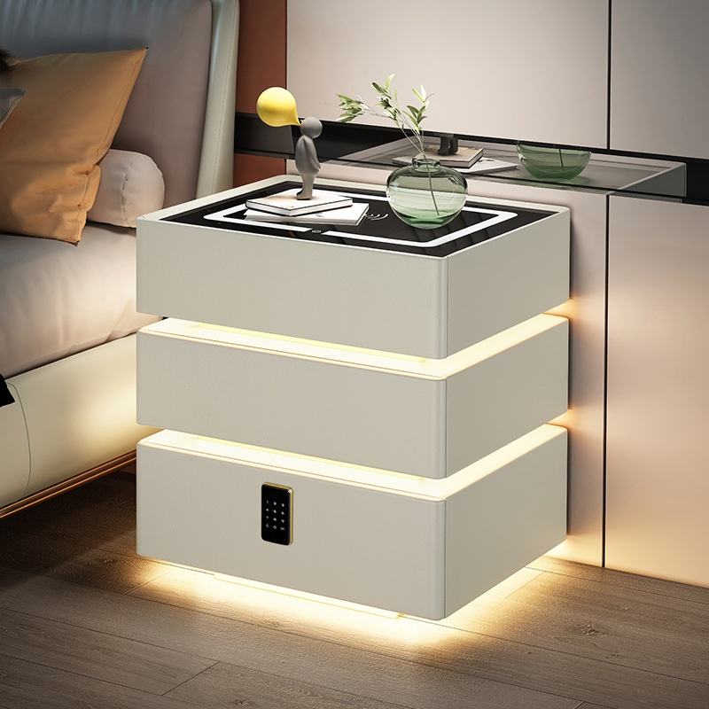 Table de chevet intelligente de luxe en bois avec plateau en plexiglas, style crème, simple et moderne, chargement sans fil, verrouillage par mot de passe, haut-parleur Bluetooth