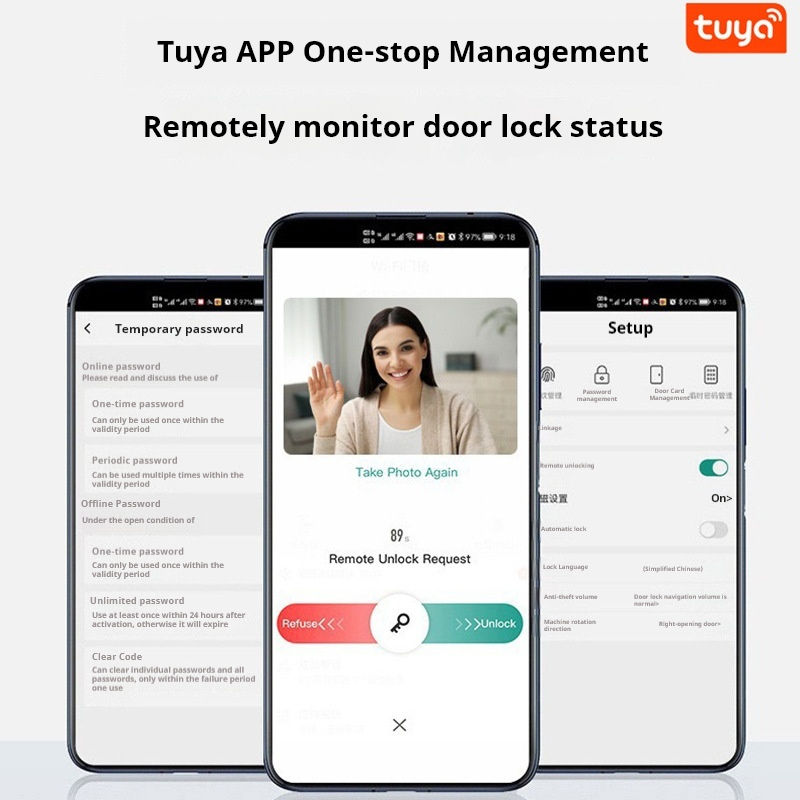 Débloquer le chemin:Reconnaissance faciale 3D + Empreinte digitale + Mot de passe + Carte + Clé + Application