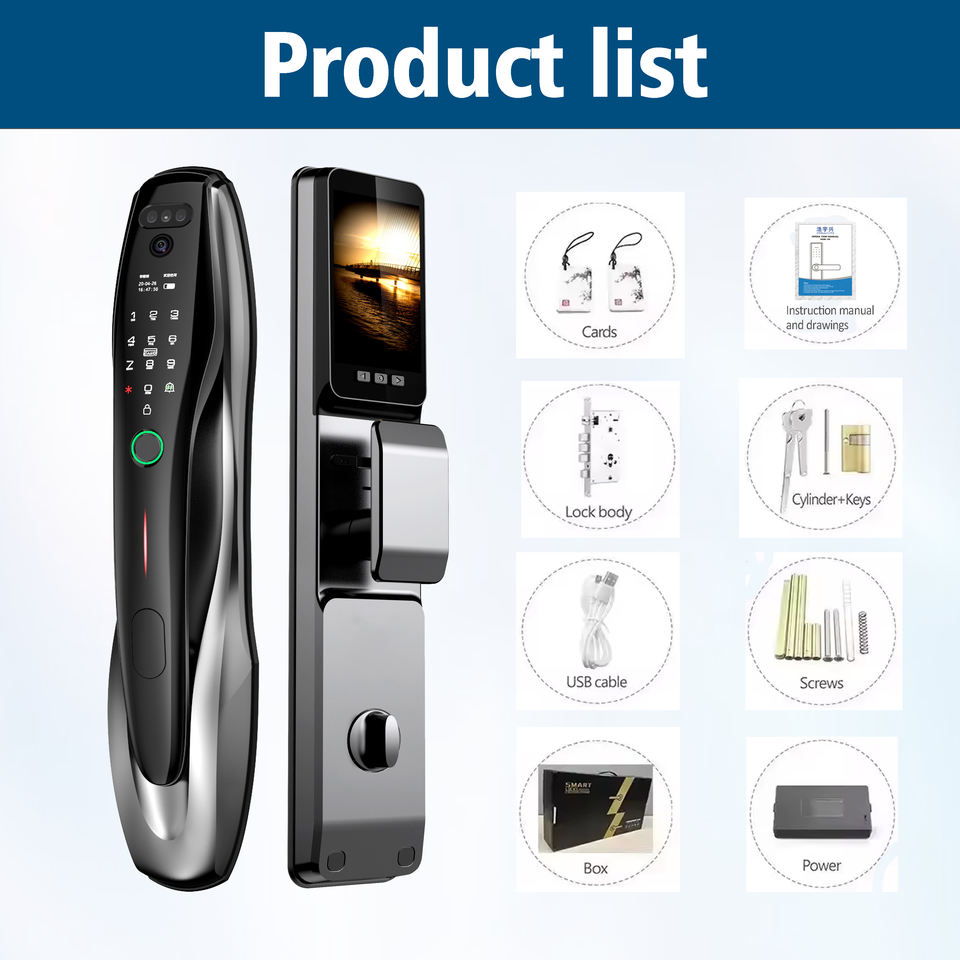 Serrure Intelligente Numérique à Empreinte Digitale, Verrou de Porte Électrique Intelligent, Couleur Noire
