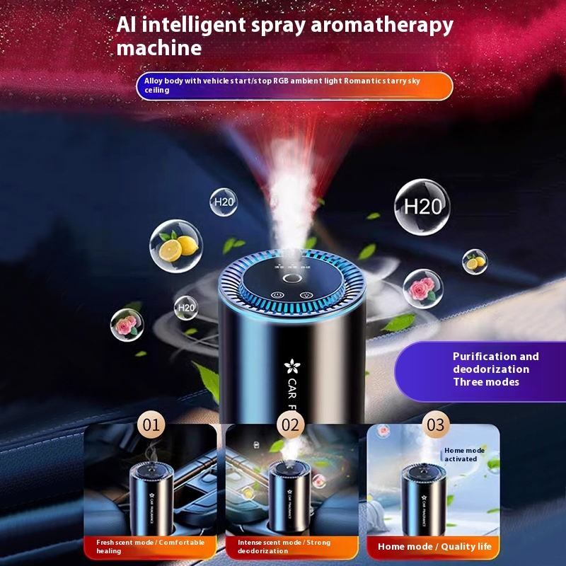 Diffuseur Intelligent d'Arômes de Voiture en Métal avec Éclairage Ambiant pour Éliminer les Odeurs et Démarrer/Arrêter la Diffusion de Parfum