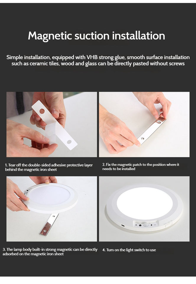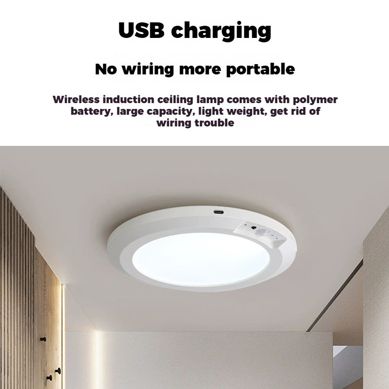 Plafonnier LED intelligent moderne IP44 avec détecteur de mouvement, télécommande, batterie rechargeable USB, fixation magnétique AC, détection de présence humaine