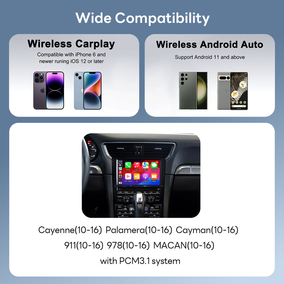 Interface vidéo multimédia intelligente avec CarPlay sans fil et Android Auto pour les modèles Porsche PCM 3.1 à écran 7 pouces