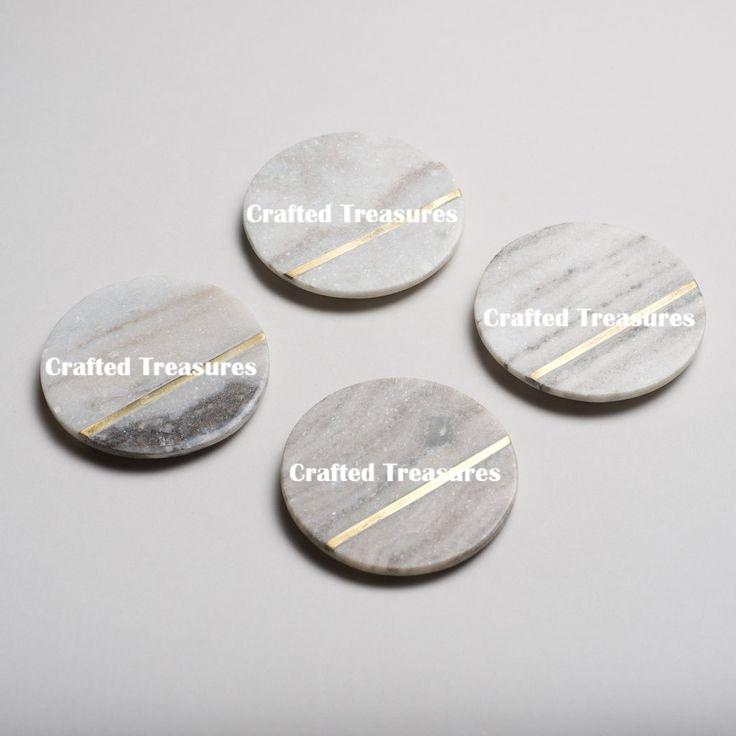 Ensemble de 4 sous-verres en marbre blanc naturel avec sous-verre en bois, ensemble de tapis de tasse rond en marbre pour la maison et la cuisine