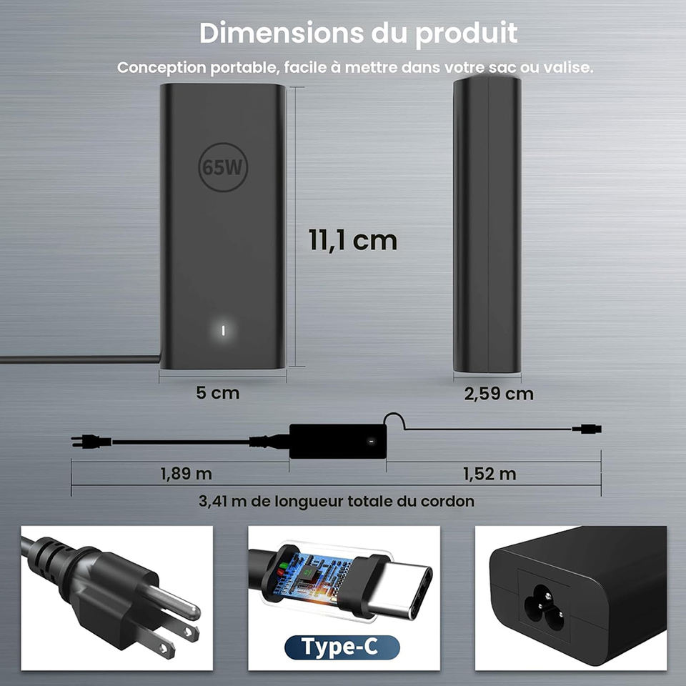 Smart PD 65W GaN USB-C Charger For Dell, Auto Voltage Matching, Effectively Protect Laptop Battery Health