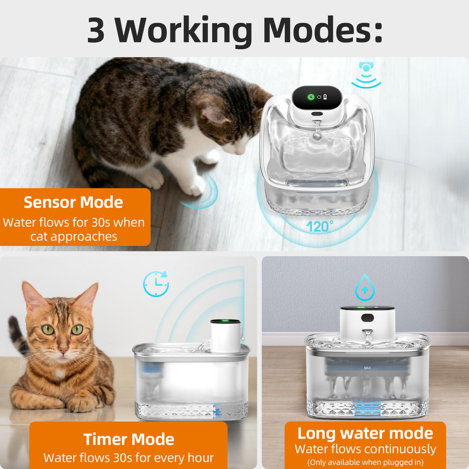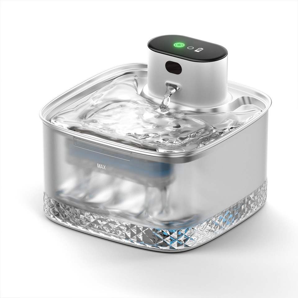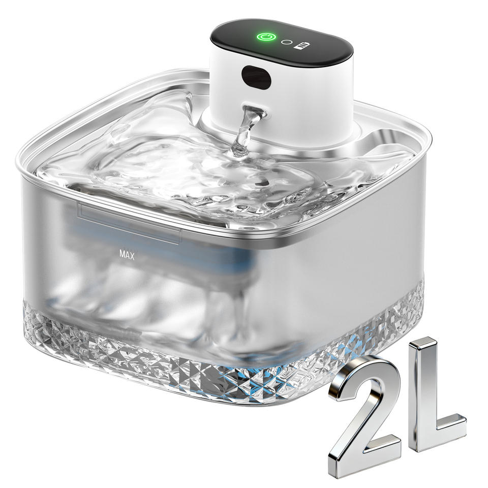 Fontaine à eau intelligente pour animaux de compagnie, 2L, circulation automatique, pour chats et chiens, rectangulaire, transparente, avec filtre en coton bleu