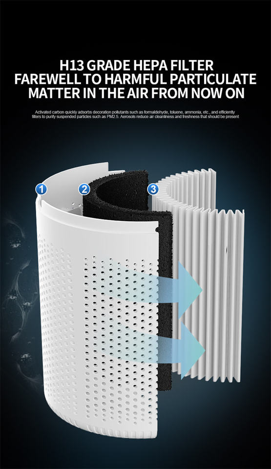 Taille du produit:Purificateur d'air 11*11*19 cm avec filtre Hepa