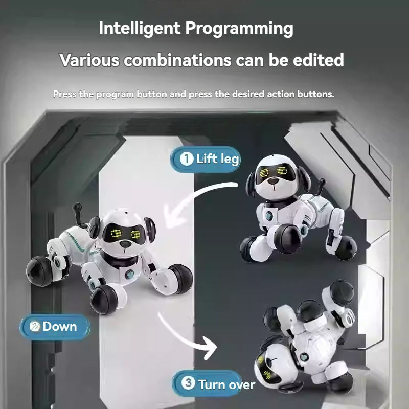 Smart Programmable Robot Dog 10 Channel IR Remote Control Robotic Pet with LED Lights, Music & Voice Commands STEM Toy for Kids