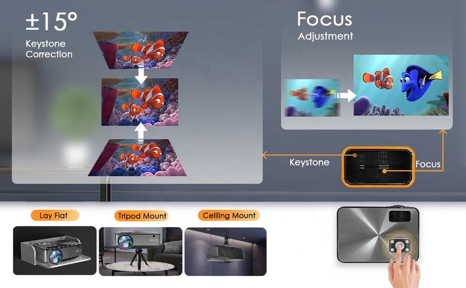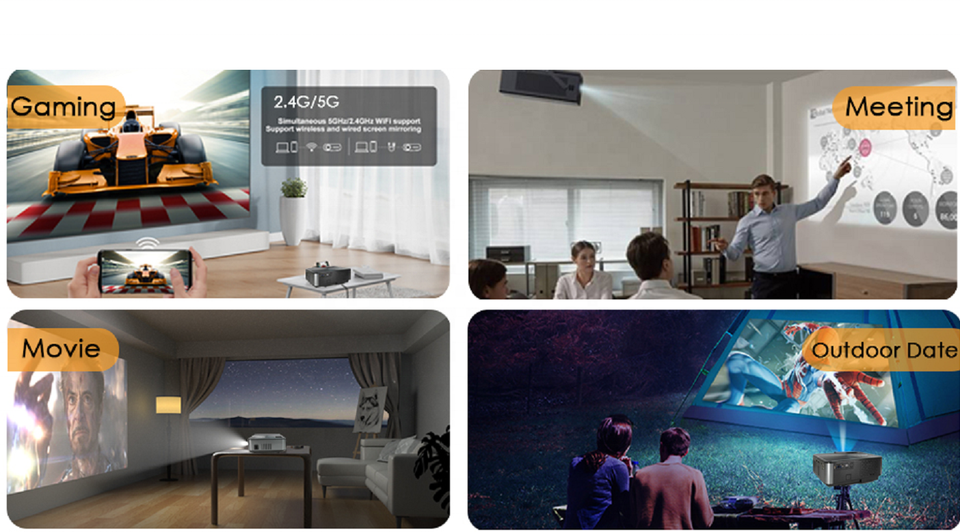 Projecteur intelligent 1080P, projecteur vidéo pour home cinéma, Android 9, Wi-Fi, BT 5G, mise au point manuelle, prise en charge 3D, projecteur de films 4K
