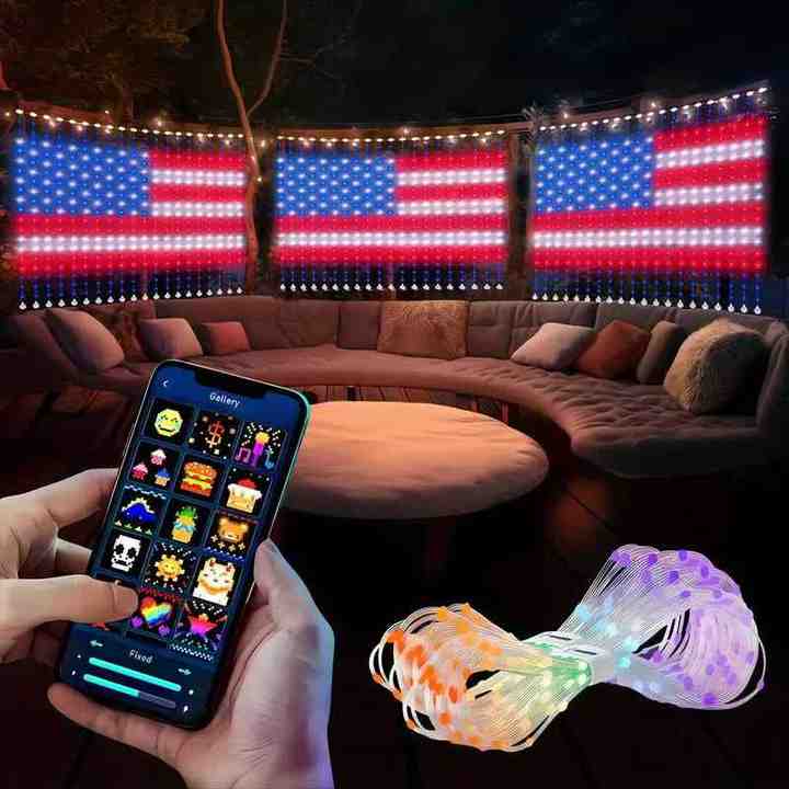 Rideaux lumineux intelligents à pixels RGB 1*1m, lumières LED programmables, lumières féériques, commande vocale/application/télécommande, IP44, DC5V, USB, plastique