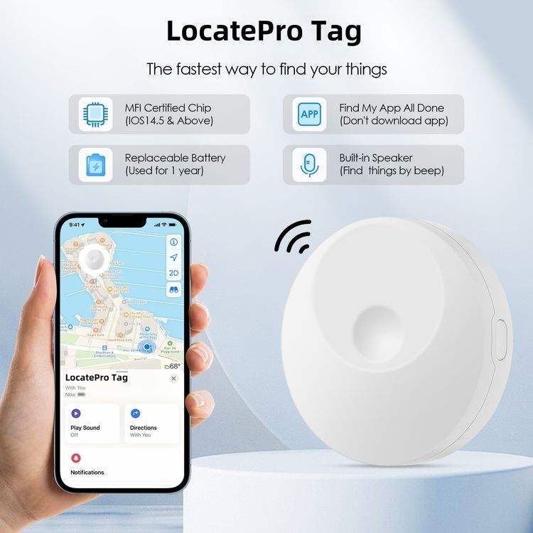 Traceur GPS intelligent rond avec alerte bidirectionnelle, Bluetooth, anti-perte pour animaux de compagnie, enfants, personnes âgées, sécurité des objets