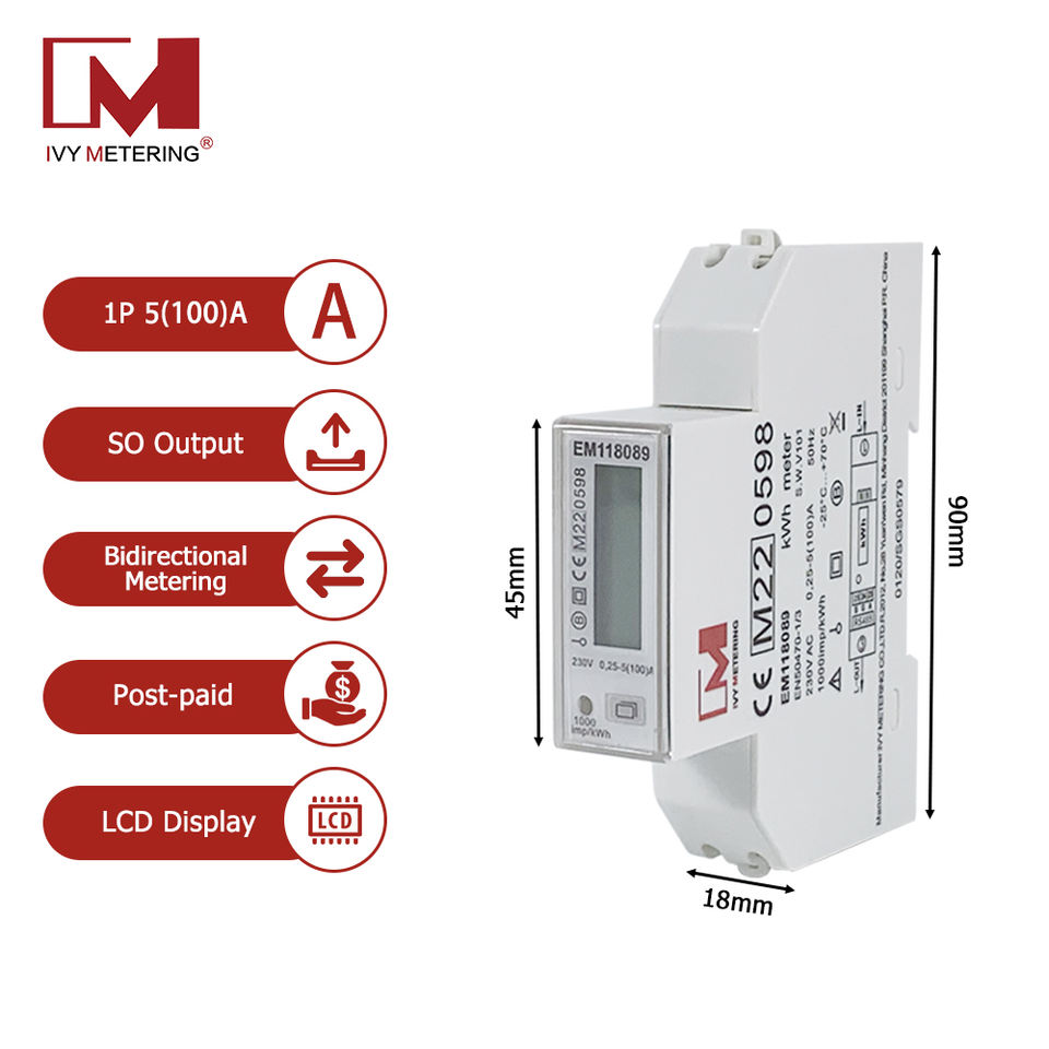 Compteur d'énergie intelligent monophasé multifonction kilowattheure kWh, compteurs de puissance 5-100A 230V 50Hz, contrôle de la charge tarifaire