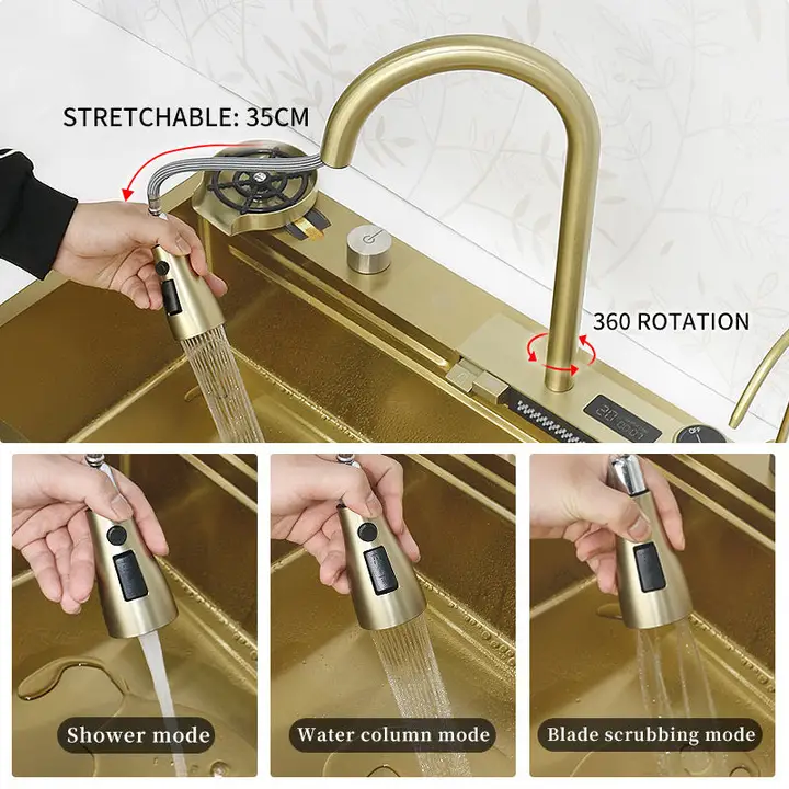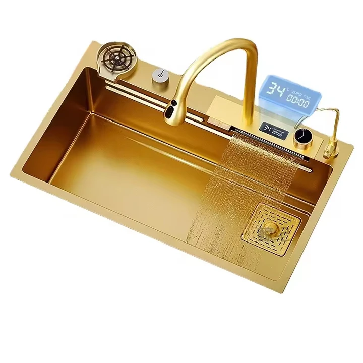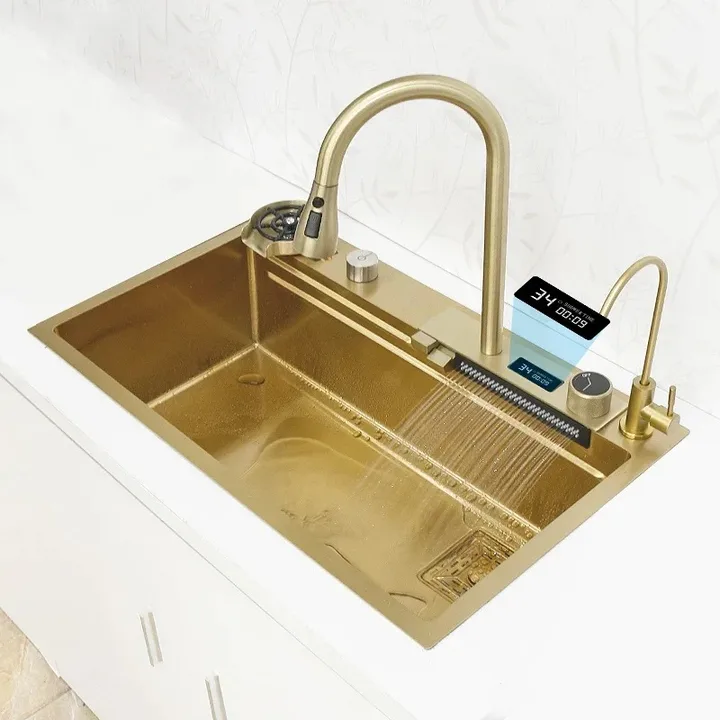 Évier de cuisine intelligent simple rectangulaire/carré en acier inoxydable, installation de comptoir en nano surface brossée, robinet à un trou inclus