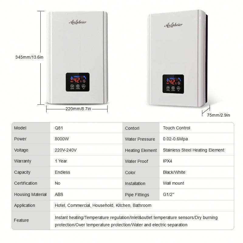 Petite salle de bain intelligente écran tactile LED 8000W chauffe-eau électrique instantané sans réservoir pour camping-car et hôtel