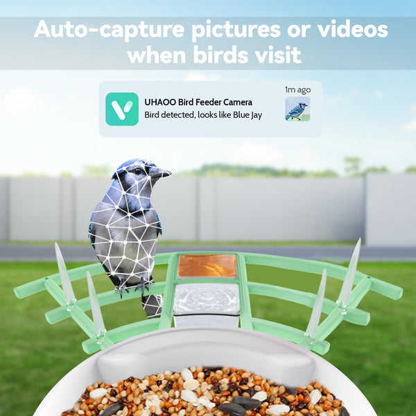 Caméra de mangeoire à oiseaux intelligente à énergie solaire, étanche, avec reconnaissance IA, vision nocturne HD 1080P, observation des oiseaux