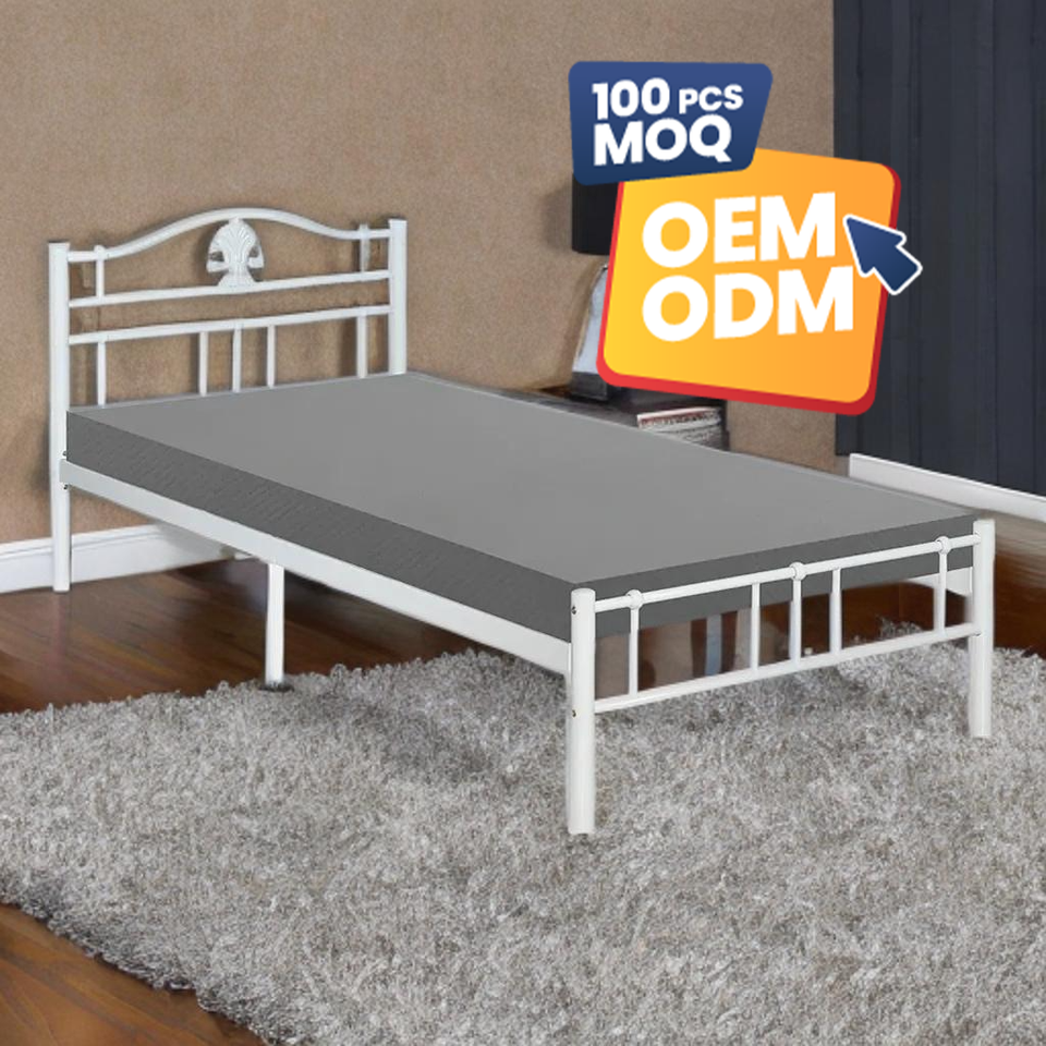 Cadre de lit simple en fer KD-1119 Design moderne en acier durable et peu encombrant pour chambre à coucher ou dortoir