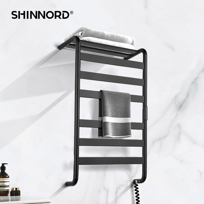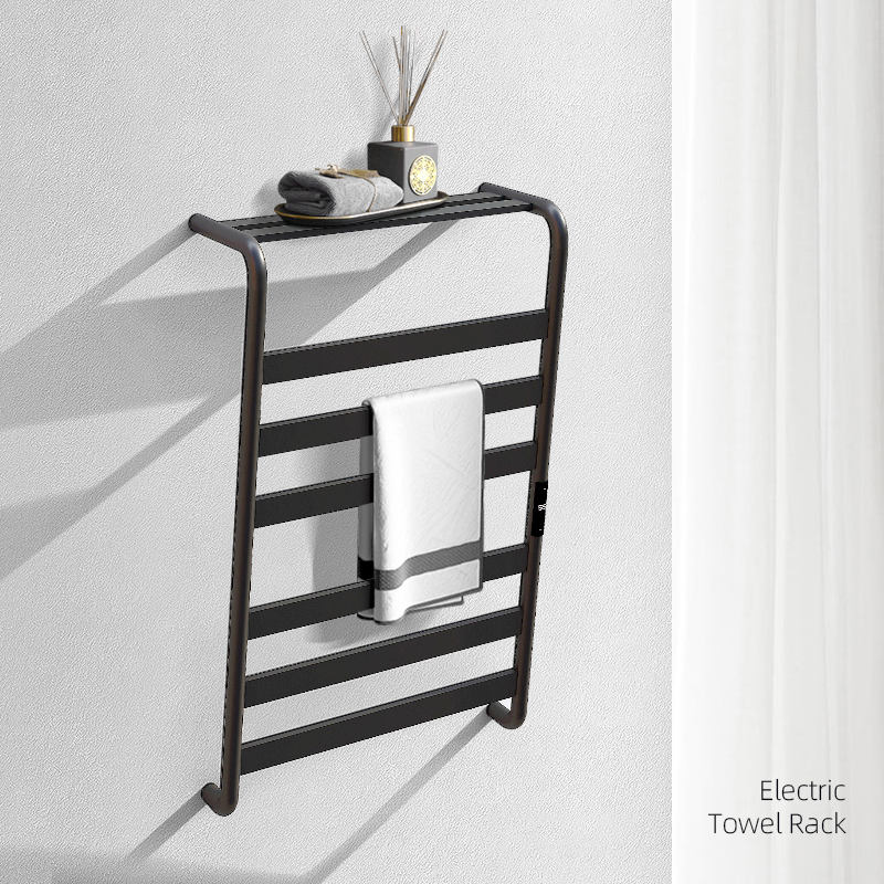 Radiateur électrique de salle de bain mural en acier inoxydable intelligent Séchage chauffant Supports noirs de haute qualité Chauffe-serviettes