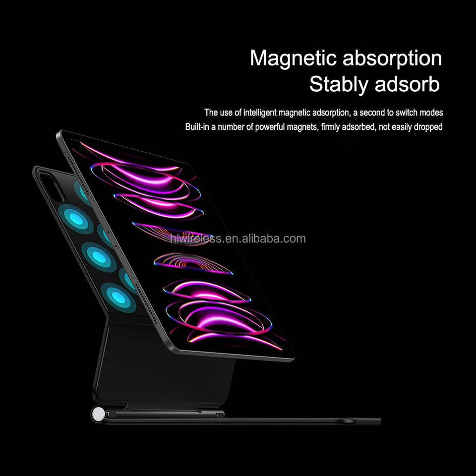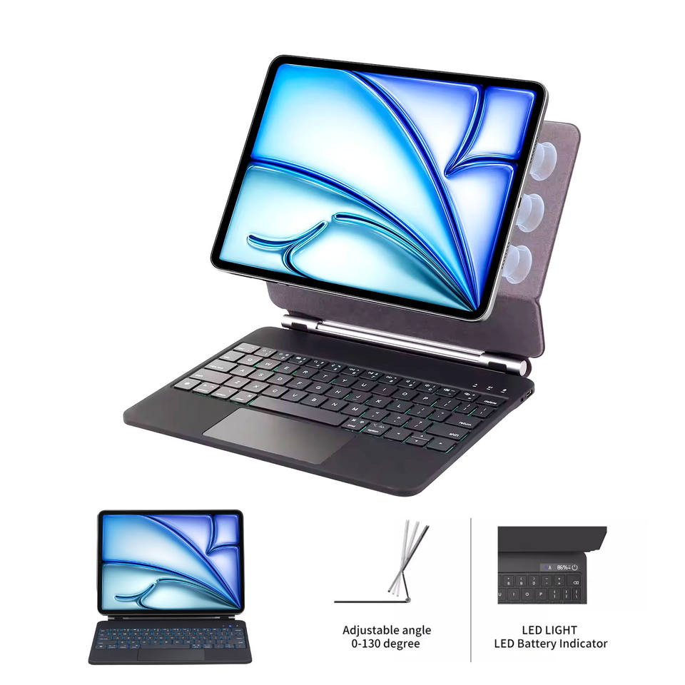 Tablette intelligente sans fil pour iPad Pro 11/12,9 pouces avec pavé tactile rétroéclairé LED RVB 2018-2022 Pro M4 M3 M2 Étui pour clavier magique