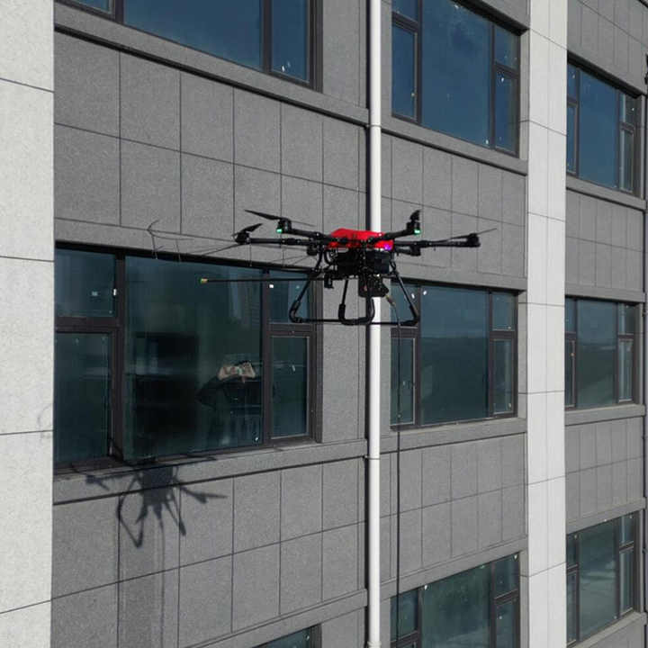 Drone de nettoyage connecté offrant une alimentation électrique constante et un fonctionnement sûr pour les grands travaux de nettoyage de panneaux d'affichage