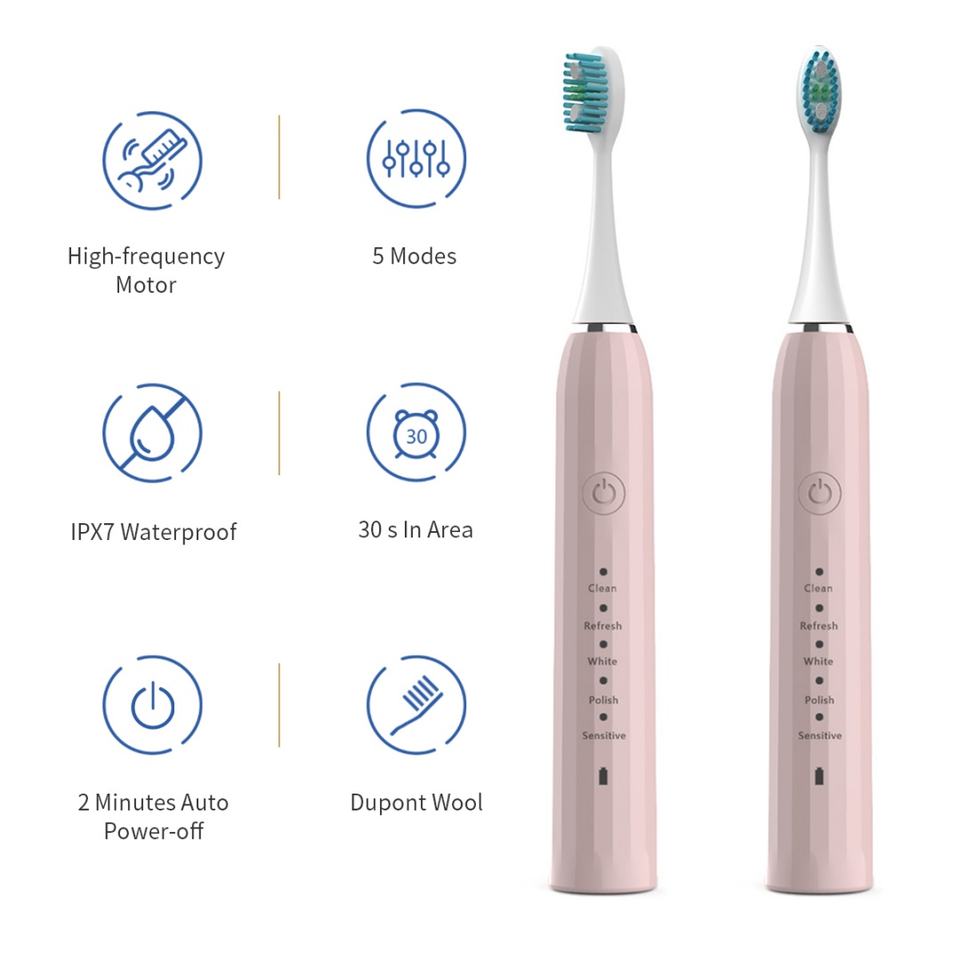 Brosse à dents électrique intelligente pour hommes, avec minuterie, pour blanchir les dents en voyage, rechargeable, douce, professionnelle, pour adultes