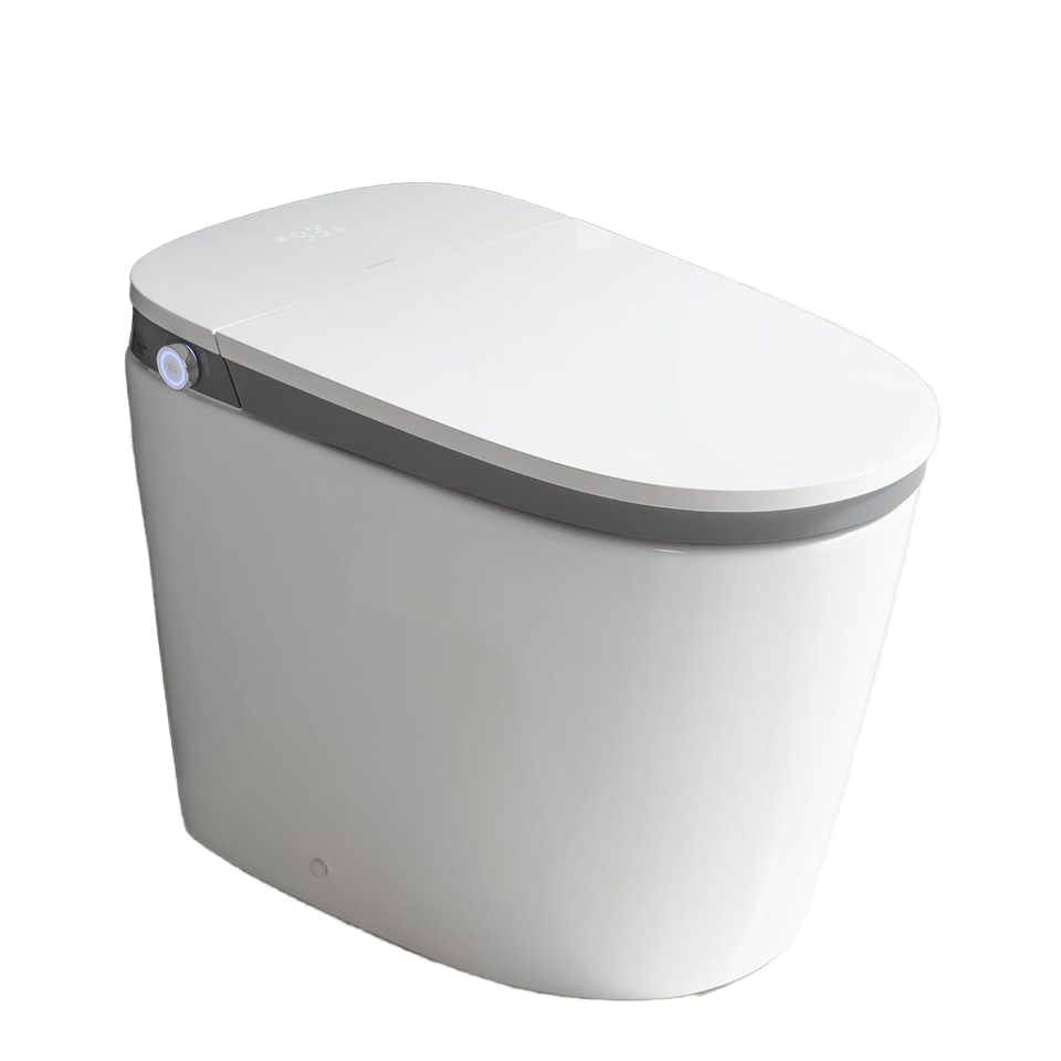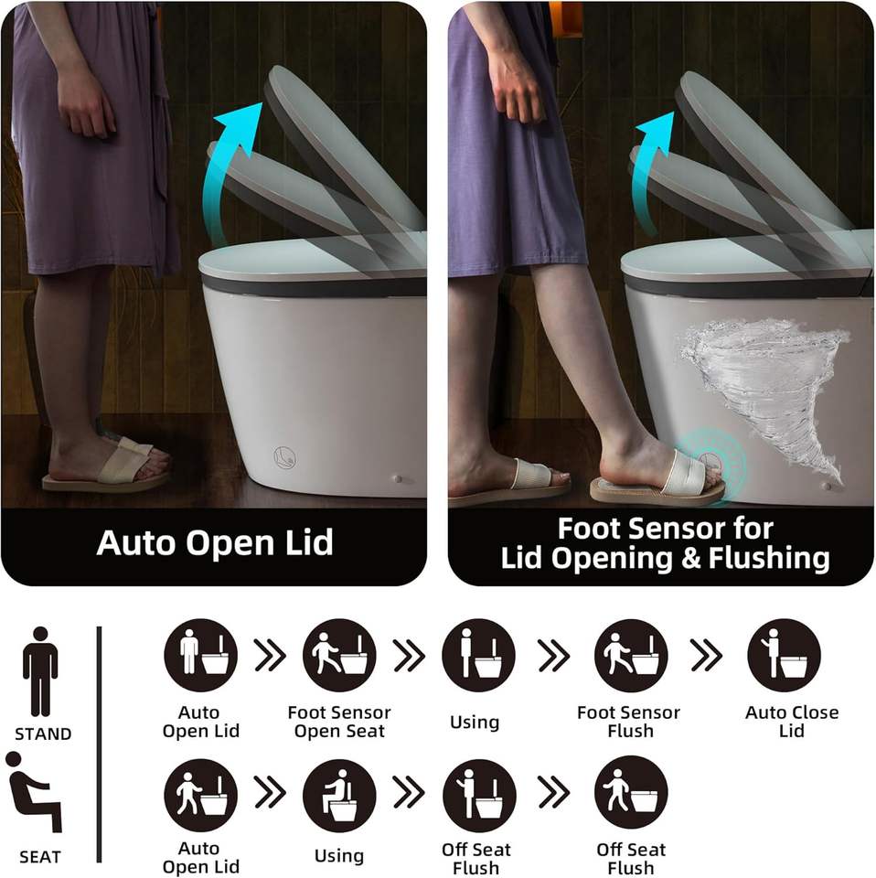 Toilette intelligente allongée à siphon en S, ouverture/fermeture automatique, chasse d'eau 1000g MaP, protection en mousse, capteur de pied, séchage, chasse automatique, hauteur ADA, siège chauffant