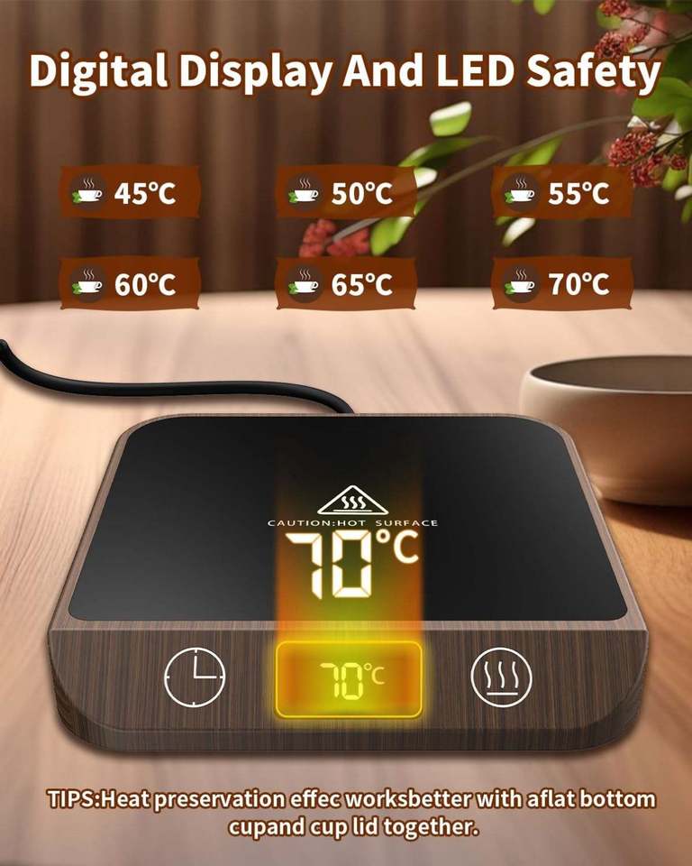 Chauffe-tasse USB intelligent avec affichage de la température, arrêt automatique 2-12h, design en bois pour bureau et maison – Produits en stock