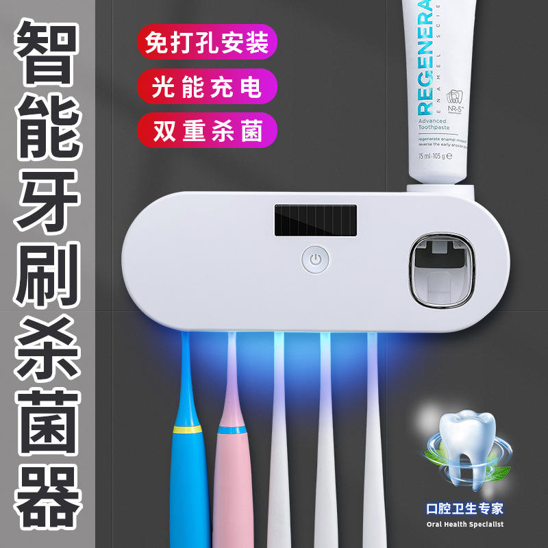 Support de brosse à dents UV intelligent avec ventouse et distributeur de dentifrice, stérilisateur en plastique blanc nordique pour salle de bain