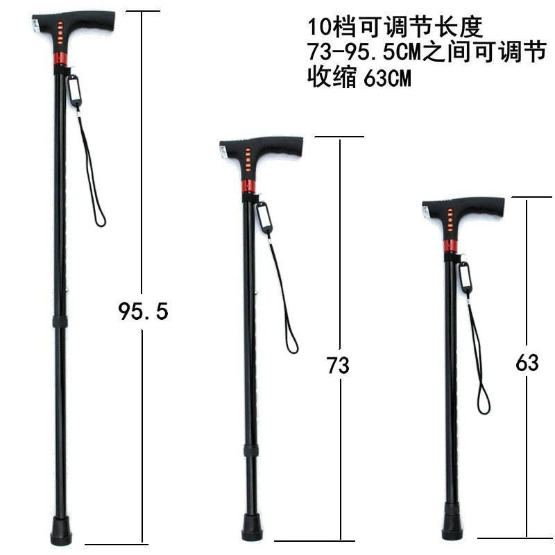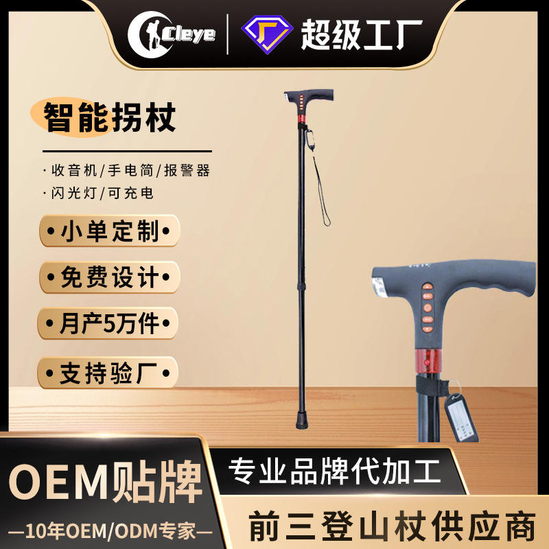Bâton de marche intelligent avec radio, lumière LED, alarme, embout antidérapant en caoutchouc, manche en alliage d'aluminium pour personnes âgées, randonnée
