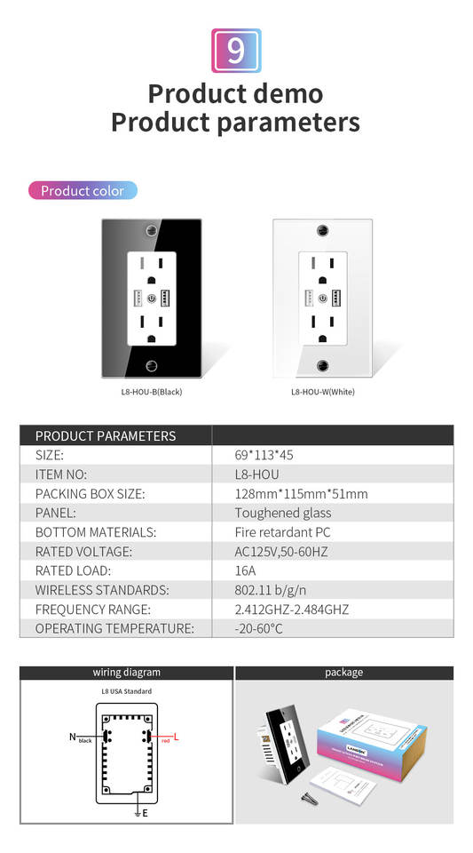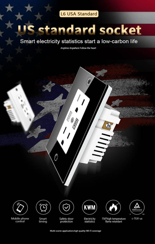 Prise murale intelligente avec rectangle Type 2 Prise murale USB USA Brésil Mexique Prise intelligente Wifi avec consommation d'énergie