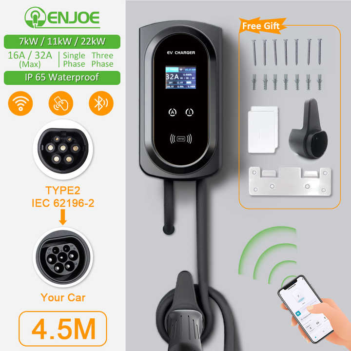 Smart Wallbox EV Chargeur 7kw 11kw 22kw Type 2 Plug AC Home Station de charge avec carte RFID Connexion Bluetooth et WiFi