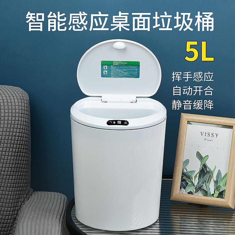Poubelle intelligente ronde avec détecteur de mouvement, mini poubelle à piles pour utilisation sur bureau