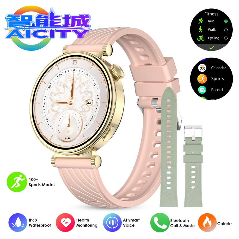 Montre connectée avec suivi de la fréquence cardiaque 24h/24 et 7j/7, tension artérielle, suivi du sommeil, AM23 AMOLED 1,32 pouce, suivi d'activité 120+ pour femmes
