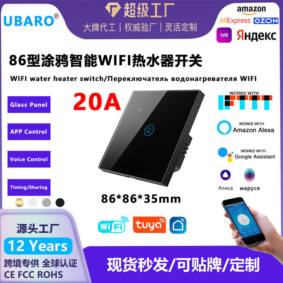 Interrupteur intelligent pour chauffe-eau, type 86, commande tactile, WiFi 2.4Ghz, télécommande intelligente Tuya pour chauffe-eau électrique