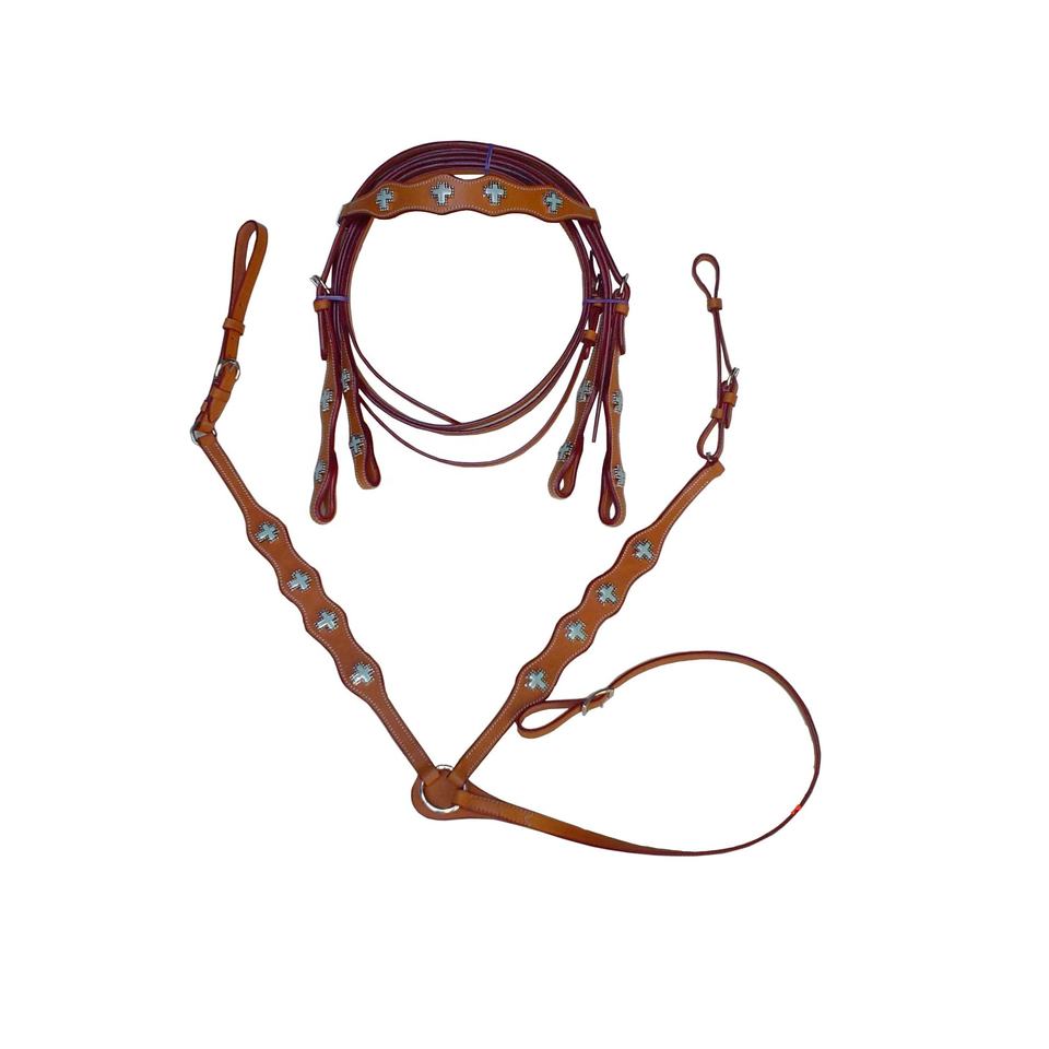 Ensemble de serre-tête et de collier de poitrine en cuir occidental intelligent Conception d'outillage à la main avec plaque Sier pour l'équitation Produit équestre