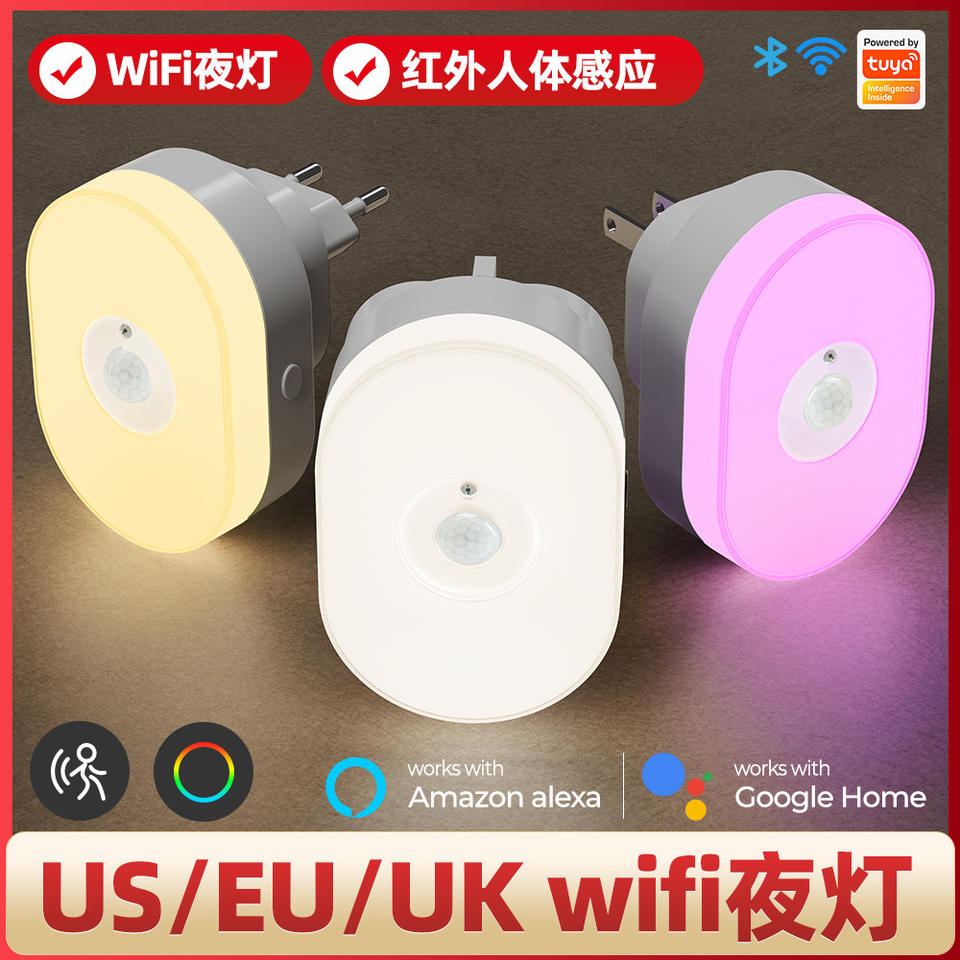 Veilleuse intelligente Wi-Fi ronde à LED blanc chaud, contrôle par application, capteur de présence humaine avec minuterie pour la maison et la chambre