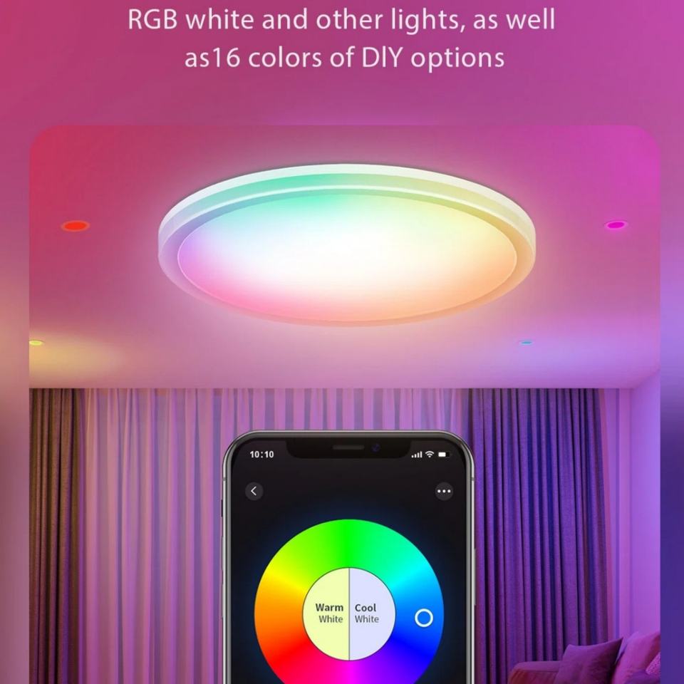 Plafonnier LED rond intelligent WiFi Rgbcw à intensité variable, compatible avec l'application Tuya, compatible avec Alexa, lumière ambiante pour la maison, la chambre à coucher, le salon