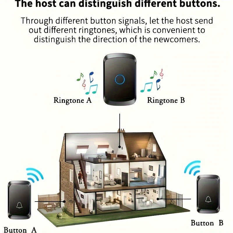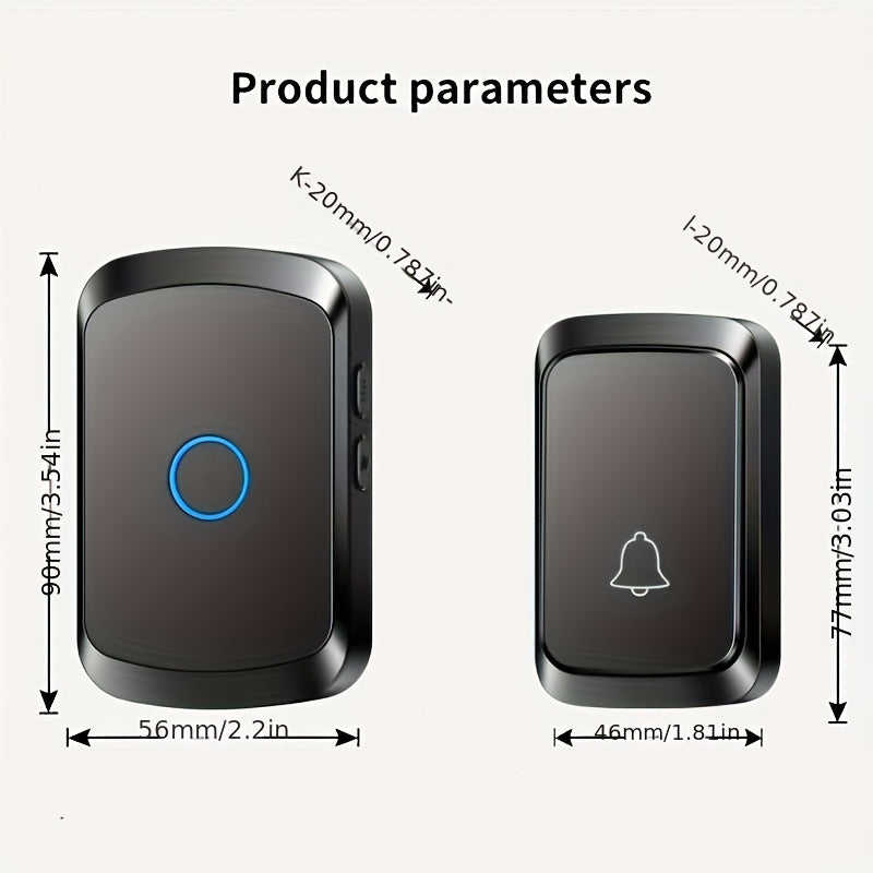 Sonnette de porte sans fil intelligente, portée de 304,8 m, 60 sonneries, 5 niveaux de volume, 110 dB, mode silencieux, indicateur LED, alimentée par batterie, noire, minimaliste